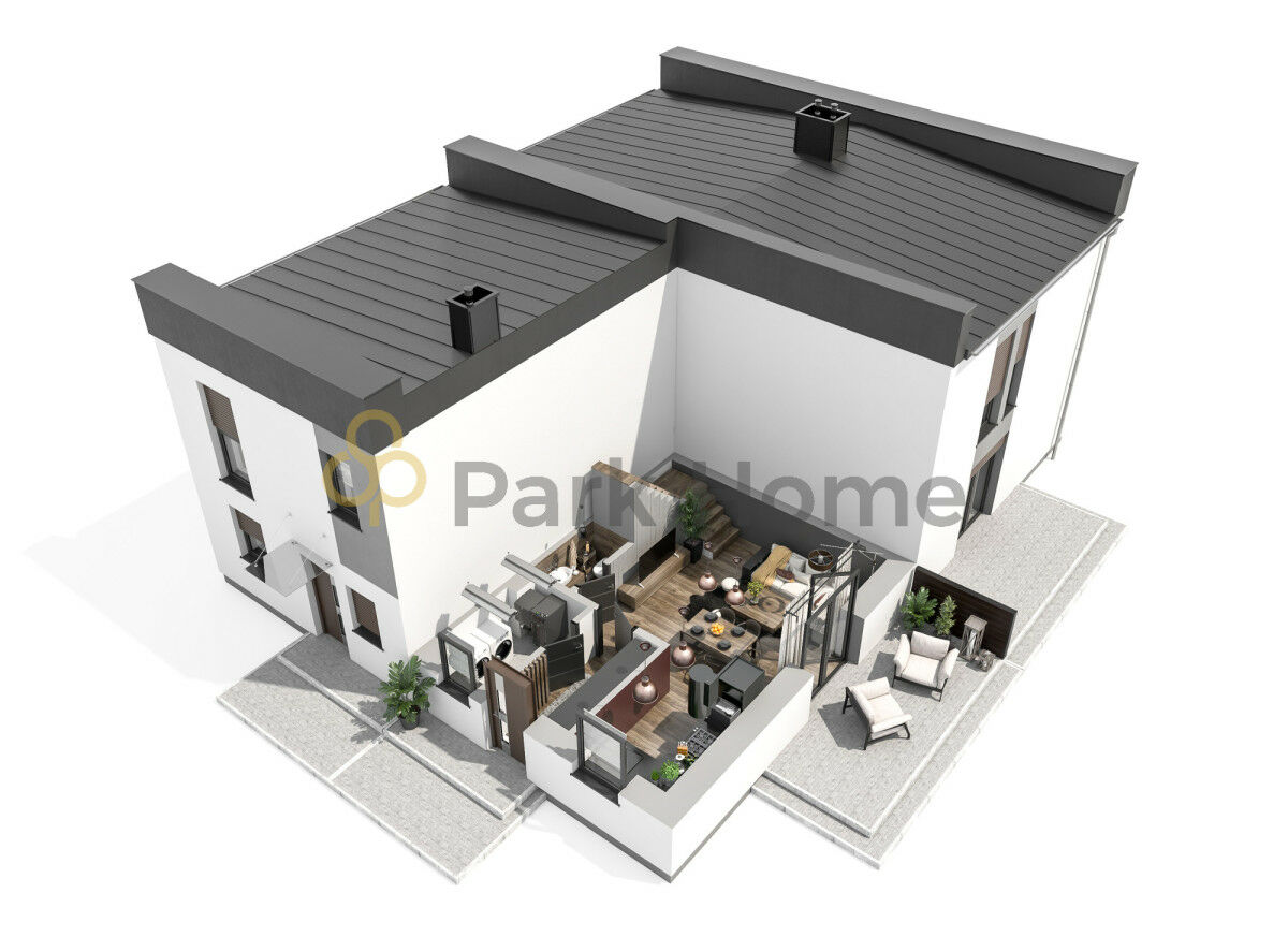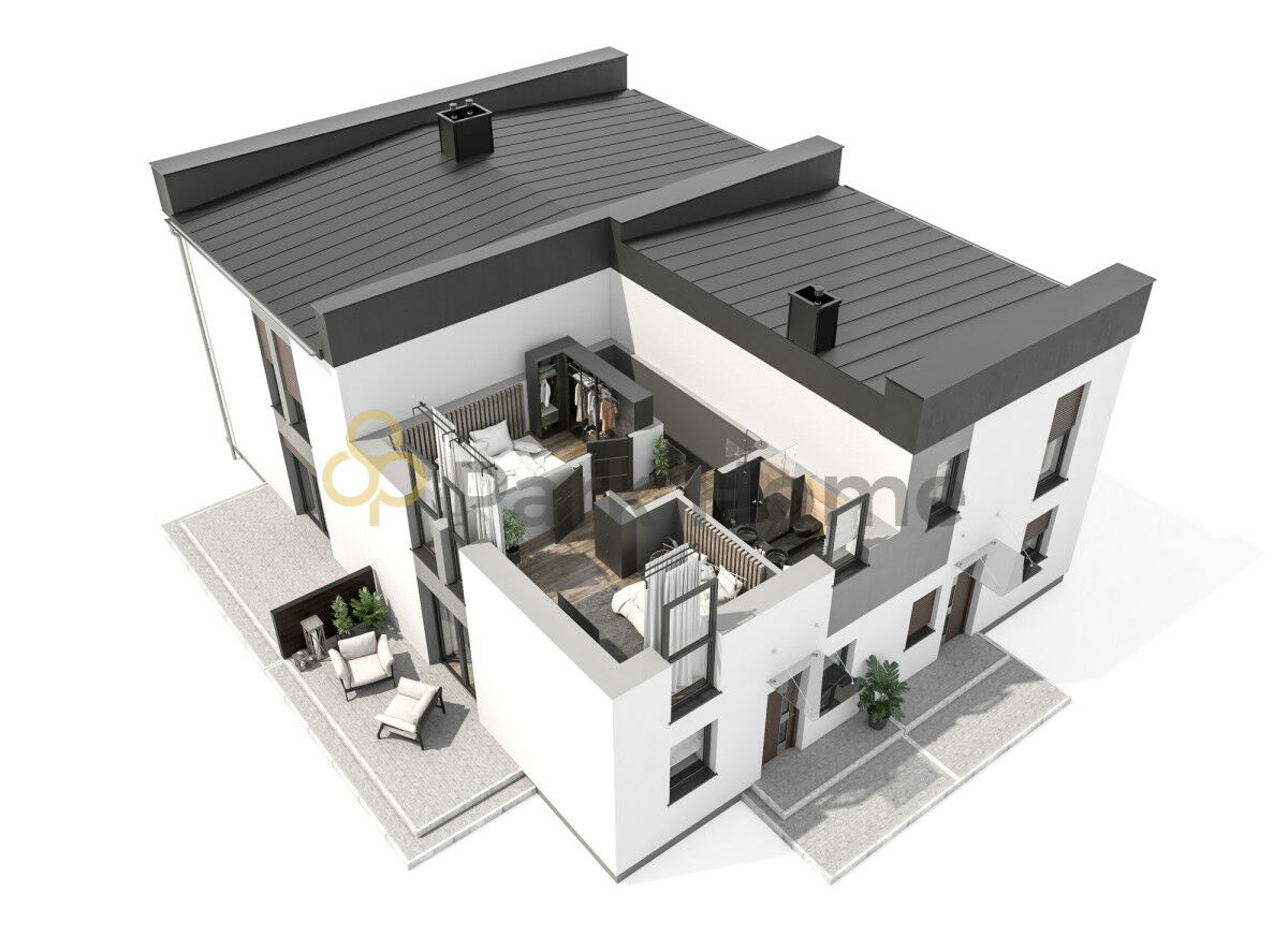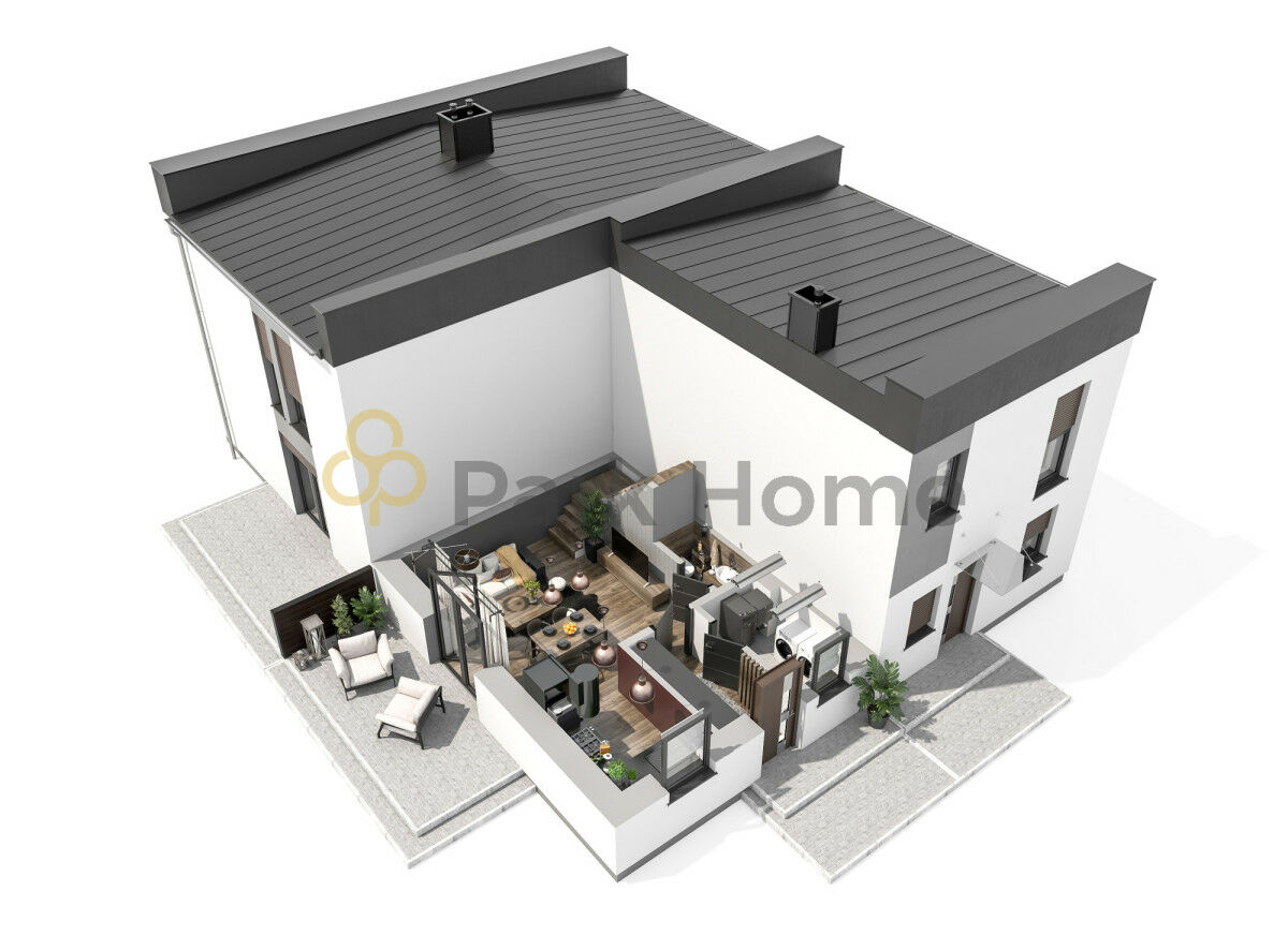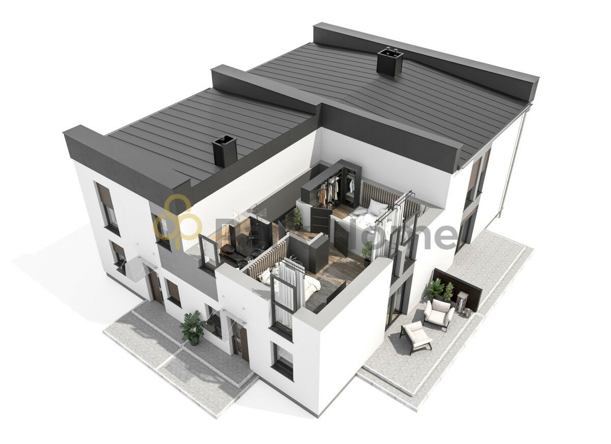 Nowoczesny dom w zabudowie czworaczej bez skosów w żadnych pomieszczeniach, co pozwala na pełne wykorzystanie całej powierzchni użytkowej.